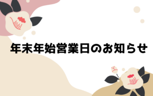 - 年末年始営業日のお知らせ年の瀬も迫り、今年も残りわずかとなりました。本年も格別のご厚情を賜り、心より感謝申し上げます。誠に勝手ながら、下記の日程を年末年始の休業期間とさせていただきます。 年末年始休業期間:12/29(月)~…
