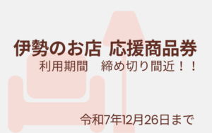 - 伊勢のお店 応援商品券 締め切り間近!利用期間の締め切りが近づいてます!お忘れの方はいませんか? 改めて、「伊勢のお店 応援商品券」の利用に関して掲載させて頂きます。イセヤ家具では、商品券と電子商品券(QRコード決済)がご使用いただけます…