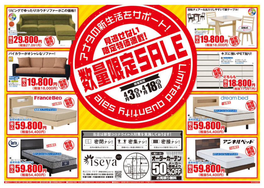 そしてSALEは4/18日(日)までなので、この期間に是非ご来店くださいませ。