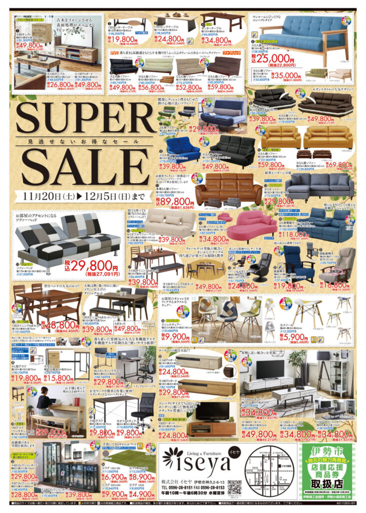 ●3人掛けソファー  幅170×奥73×高70(40)cm  35,000円(税込)
