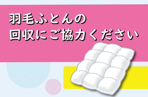 羽毛ふとんはリサイクルすることができます。 資源の再利用がごみの減量につながります。 !!注意!! ダウンの割合が50%未満のものは回収できませんのでご注意ください。 回収した羽毛ふとんは 地域の障害...