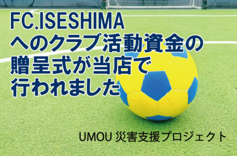 9月12日、「FC伊勢志摩」へのクラブ活動資金の贈呈式が当店で開かれました。 UMOU災害支援プロジェクトとは 中古の羽毛布団を回収して再資源化し、収益金を寄付して災害支援に活用することを目的とした...