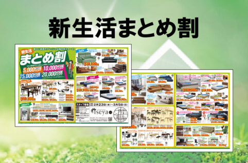 新しい家具でフレッシュな毎日をスタート!! 新 生 活 ま と め 割 開催期間:2月23日(木)から3月5日(日) SALE期間中に2点以上お買い上げ頂くと… 10万円以上ご購入で… 5,000円O...