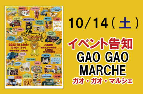 GAO GAO MARCHE ガオ・ガオ・マルシェ 日時:2023.10.14(土) 10:00~15:00 会場:外宮前 三角広場 ●入場無料 ●雨天中止・小雨決行 ●各店舗商品、売切れ次第終了 飲...